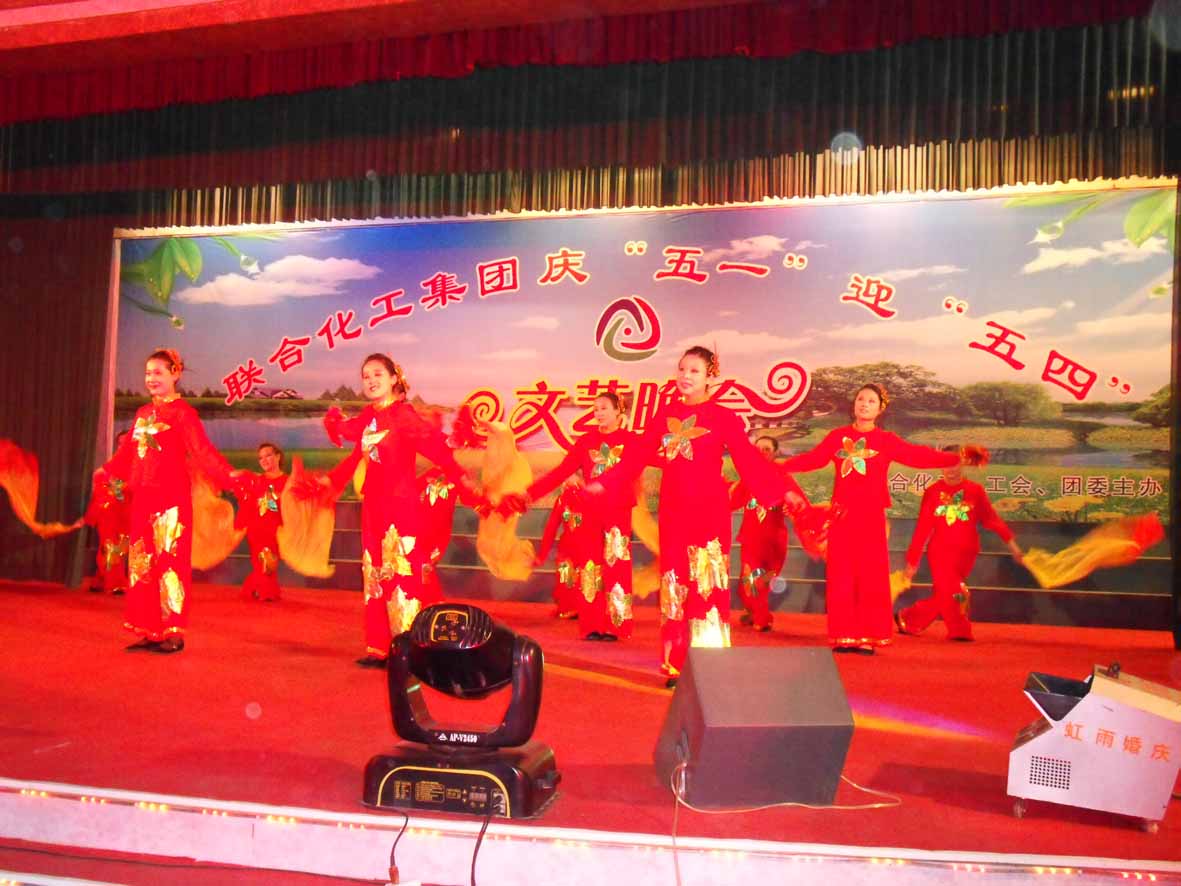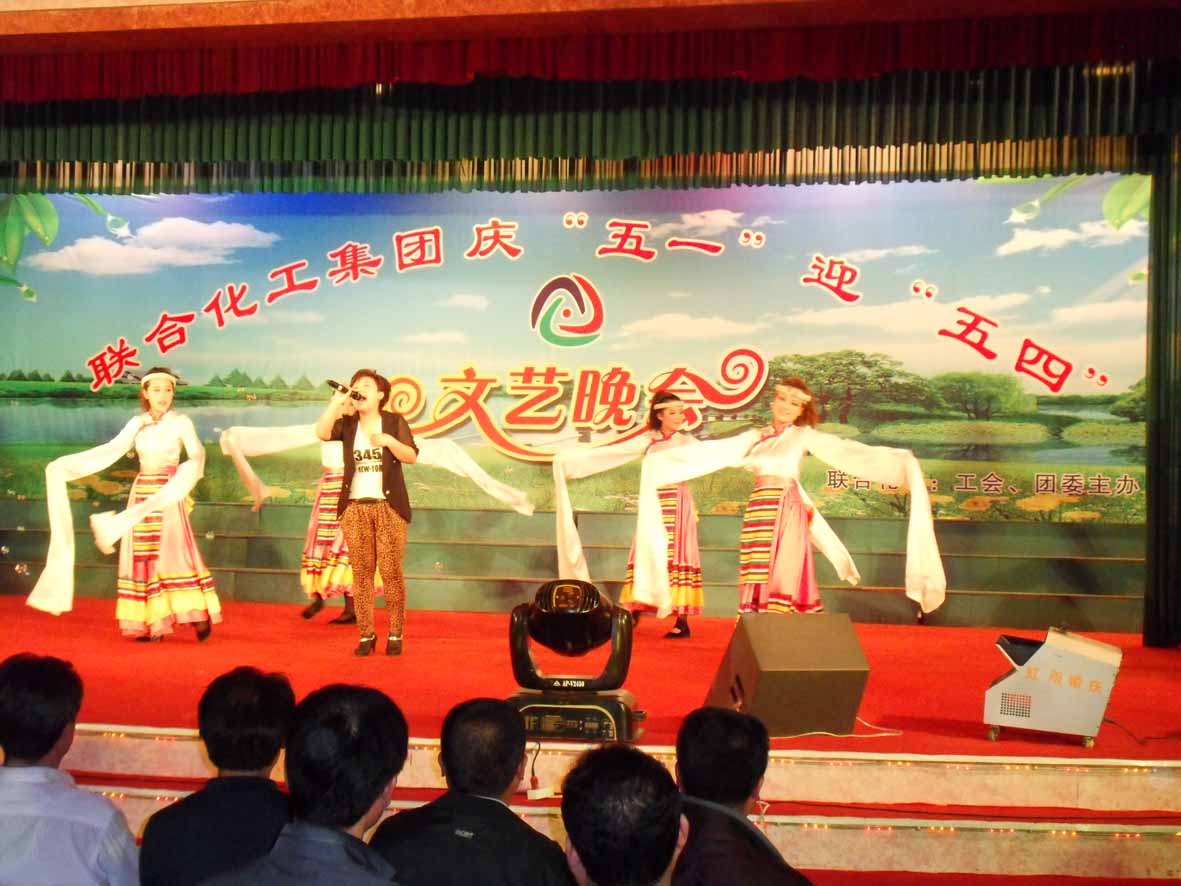 2012年 4月30日晚上,公司在東廠區(qū)二樓禮堂舉辦慶“五一”、迎“五四”文藝晚會,公司總經(jīng)理、子公司新泰聯(lián)合化工公司董事長龐世森等領導及公司職工觀看了演出。