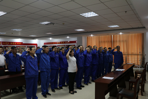 2021年7月1日上午,公司黨委在公司黨建活動中心組織召開預(yù)備黨員宣誓暨優(yōu)秀黨員表彰會議。公司黨委、紀(jì)委班子成員和各支部班子成員、17名新發(fā)展黨員及本年度獲評的20名優(yōu)秀黨員參加了會議,會議由黨委辦公室主任徐愛民主持。 宣誓儀式在莊嚴(yán)的《國際歌》聲中拉開了帷幕。2020年度和2021上半年度新發(fā)展的17名預(yù)備黨員面對鮮紅的黨旗,在黨委書記李德軍同志領(lǐng)誓下,右手舉拳,神情肅穆,鄭重宣誓。宣誓完畢后,老黨員代表郭章雷和新黨員代表東明明分別作了發(fā)言。公司黨委書記李德軍代表公司黨委向新發(fā)展的預(yù)備黨員表示了祝賀,并對新黨員提出了希望和要求。 會上,公司黨委副書記李峰同志宣讀了公司黨委《關(guān)于對推薦評選的優(yōu)秀共產(chǎn)黨員進行通報表彰的決定》,公司黨委書記李德軍、黨委副書記李峰為獲獎人員進行了頒獎。