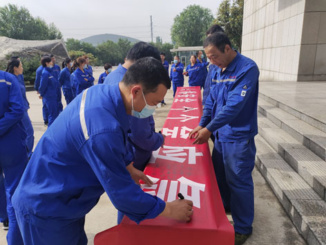 儀式開(kāi)始前,參會(huì)人員在“人人講安全 個(gè)個(gè)會(huì)應(yīng)急”的安全條幅上鄭重簽下了自己的名字,用儀式感提醒廣大職工上安全崗、干安全活。儀式開(kāi)始,與會(huì)人員首先觀看了安全警示教育片;安全總監(jiān)尹連偉宣貫了公司2023年“安全生產(chǎn)月”活動(dòng)實(shí)施方案,并帶領(lǐng)參會(huì)人員進(jìn)行了安全承諾踐諾宣誓;生產(chǎn)副總呂懷磊、硝基復(fù)合肥制造部部長(zhǎng)郭章雷分別就扎實(shí)開(kāi)展“安全生產(chǎn)月”活動(dòng)、做好下一步安全生產(chǎn)工作作了表態(tài)發(fā)言。