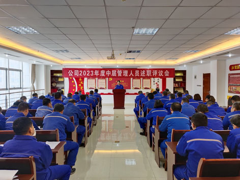 2024年2月14日下午,公司在黨建活動中心召開了2023年度中層管理人員述職評議會,公司領導李德軍、李峰、齊俊祥、呂懷磊、許立剛、尹連偉、白如彬出席了會議,公司各單位65名中層管理人員參加了本次會議。