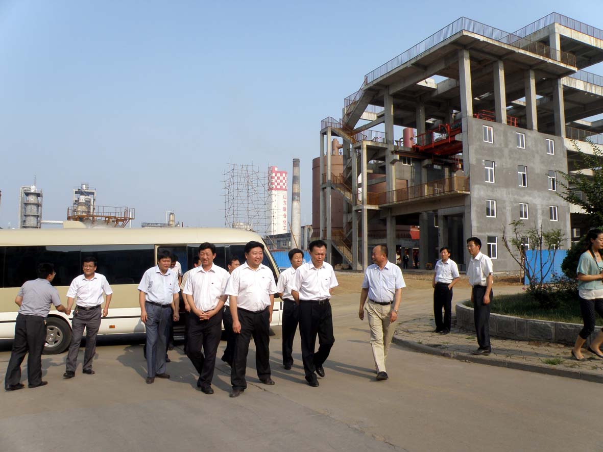 2012年 6月18日,沂源縣委書記蘇星一行到公司東部廠區(qū)對(duì)新上項(xiàng)目三萬(wàn)噸/年三聚氰胺和15萬(wàn)噸/年硝酸建設(shè)情況進(jìn)行調(diào)研,公司董事長(zhǎng)王宜明就項(xiàng)目建設(shè)情況作了匯報(bào)。  圖為調(diào)研現(xiàn)場(chǎng)