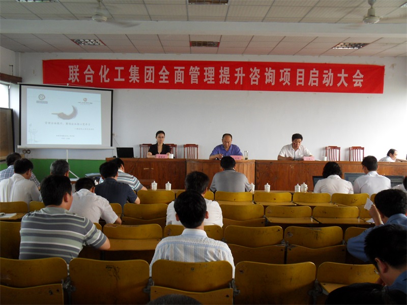 本報訊 2011年7月11日上午,公司在西廠區(qū)二樓會議室召開了全面管理提升咨詢項目啟動大會。會議由公司黨委委員、工會主席李紹勝主持。公司領導、各處室、車間、部門主要負責人及聯(lián)豐公司、新泰聯(lián)合化工公司總經(jīng)理出席了會議。