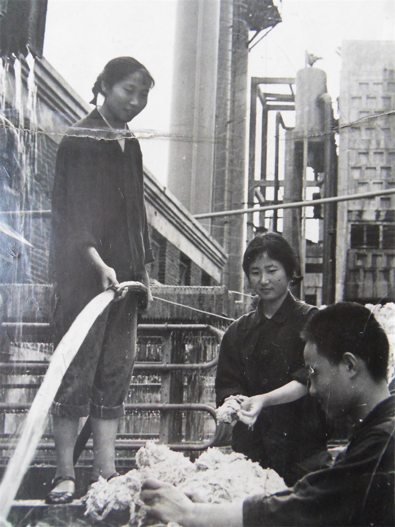 合成車間壓縮工段的職工利用業(yè)余時間回收清洗舊棉紗